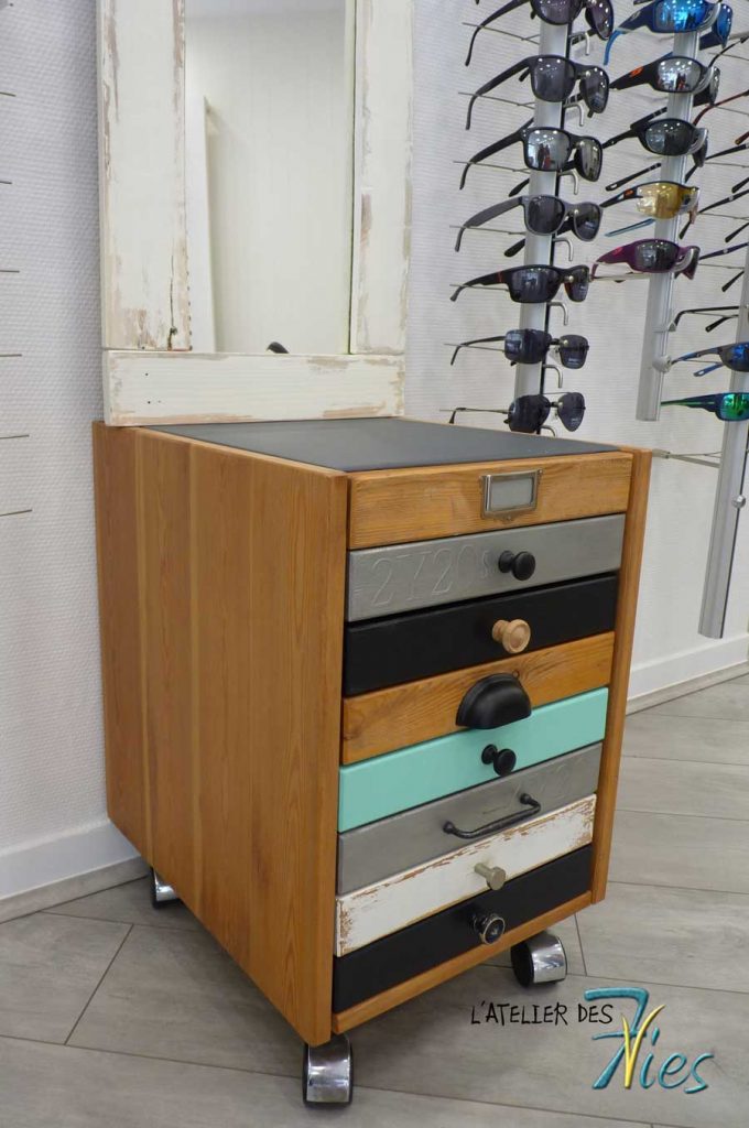 Visible dans ce magasin d’optique de Pézenas, ce petit meuble est un nouvel exemple de relooking.